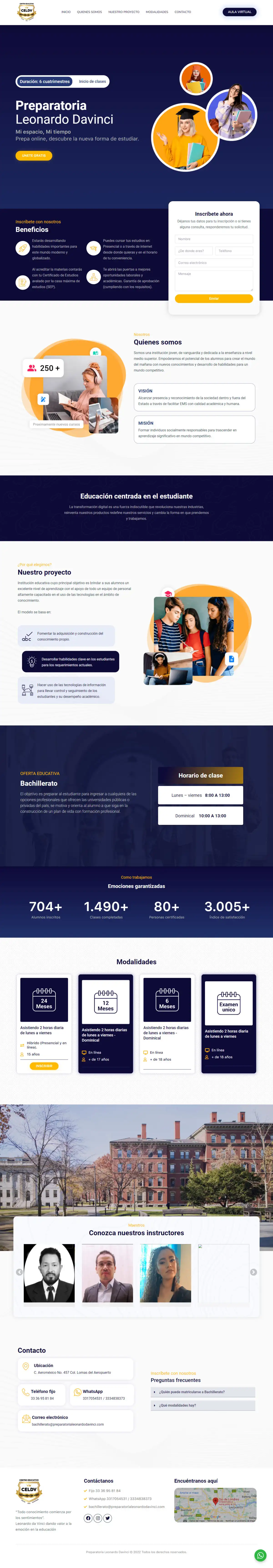 Escuela Da Vinci – Aulas de Aprendizaje es un proyecto enfocado en desarrollar una landing page dinámica y visualmente atractiva, pensada para captar la atención del público juvenil en búsqueda de formación académica. El reto fue sencillo pero poderoso: mostrar su oferta educativa de manera clara y cohesionada, usando su identidad corporativa y elementos visuales modernos.