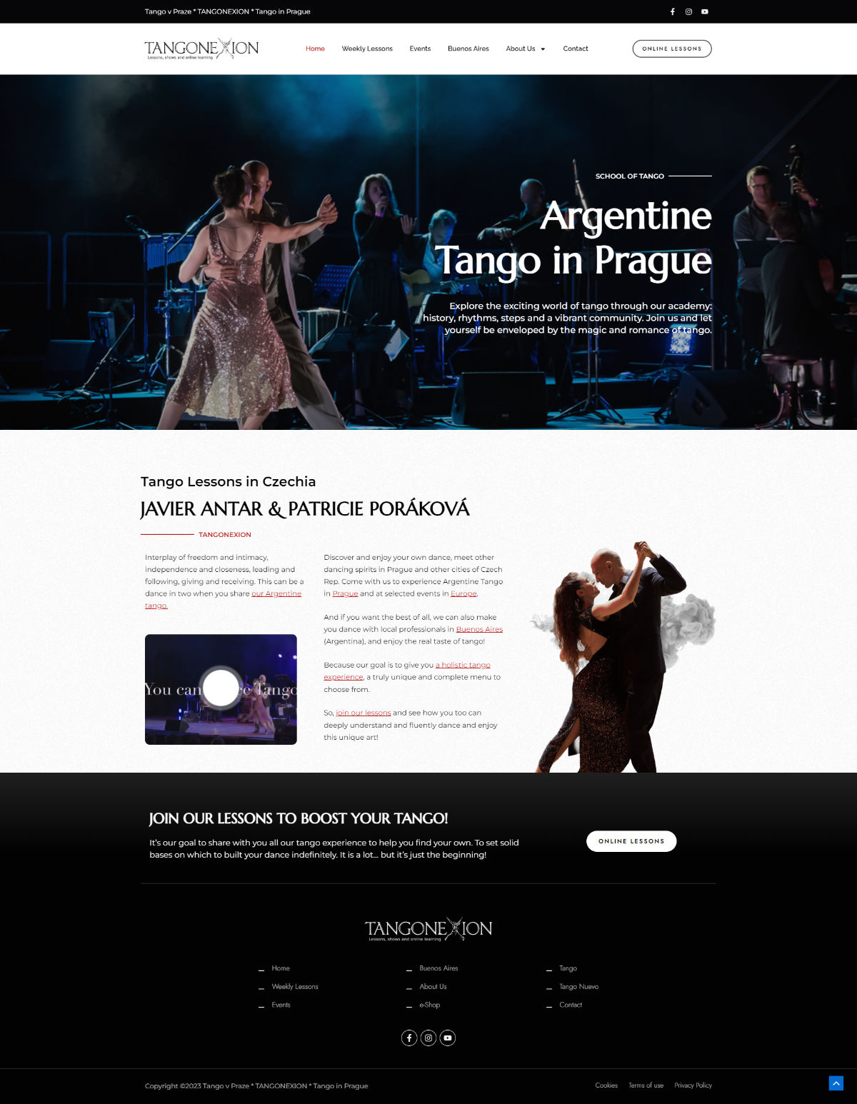 El sitio fue diseñado desde cero, integrando una navegación bilingüe (checo e inglés) para ampliar el alcance de su trabajo y una sección especial para gestionar sus servicios de enseñanza, donde los usuarios pueden reservar clases personalizadas o grupales, además de consultar horarios y métodos de contacto. El resultado es una plataforma visualmente limpia y elegante que comunica la esencia del tango como arte y estilo de vida, y que al mismo tiempo potencia la proyección internacional del artista.